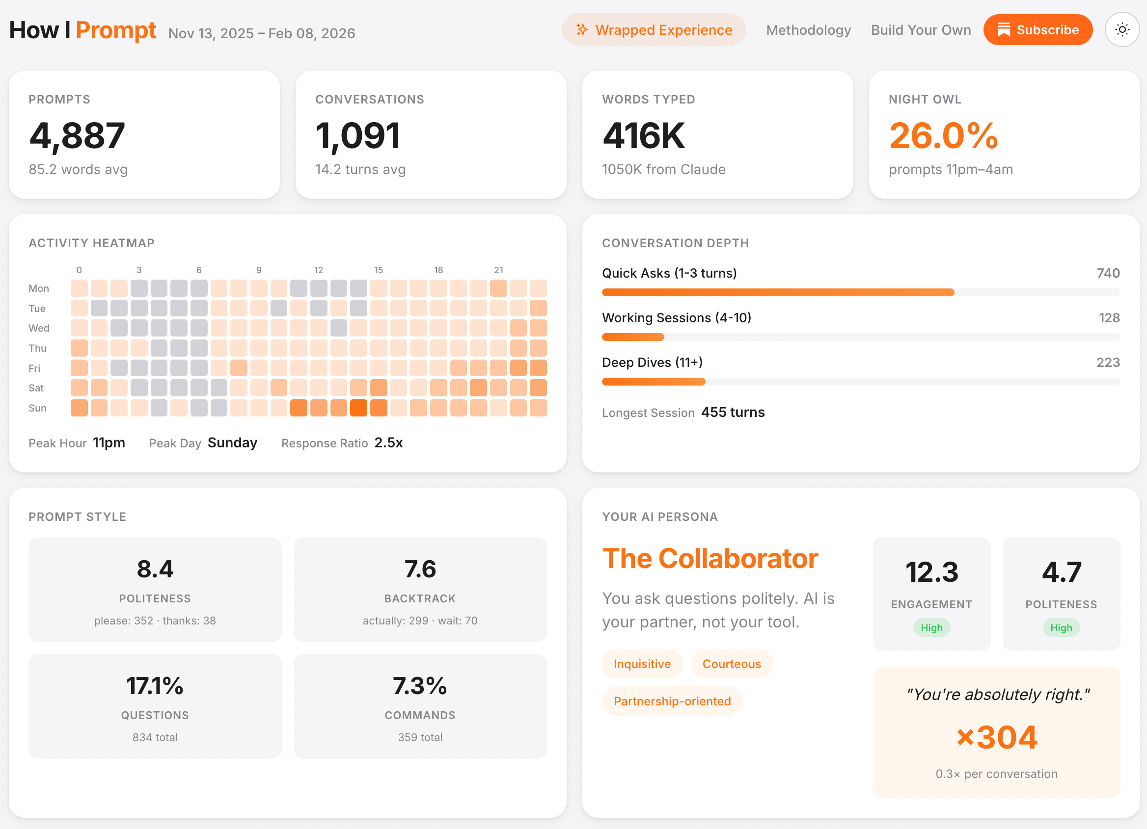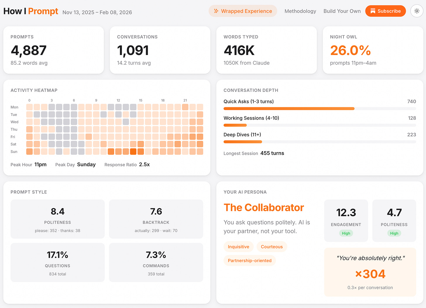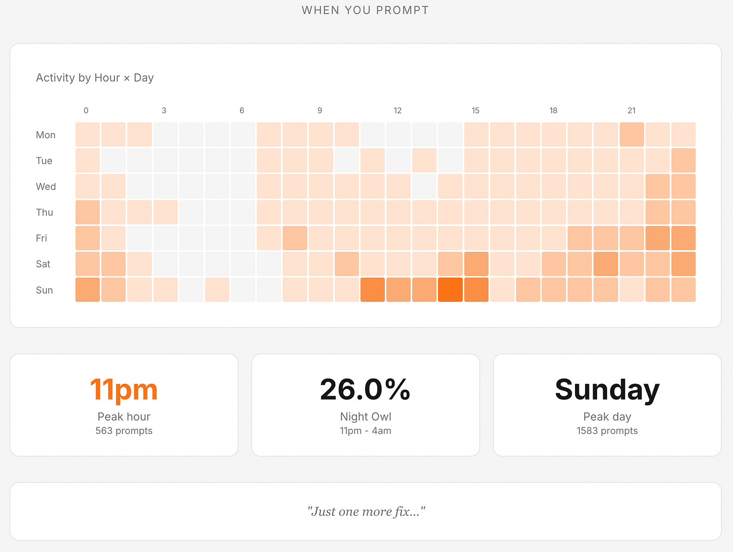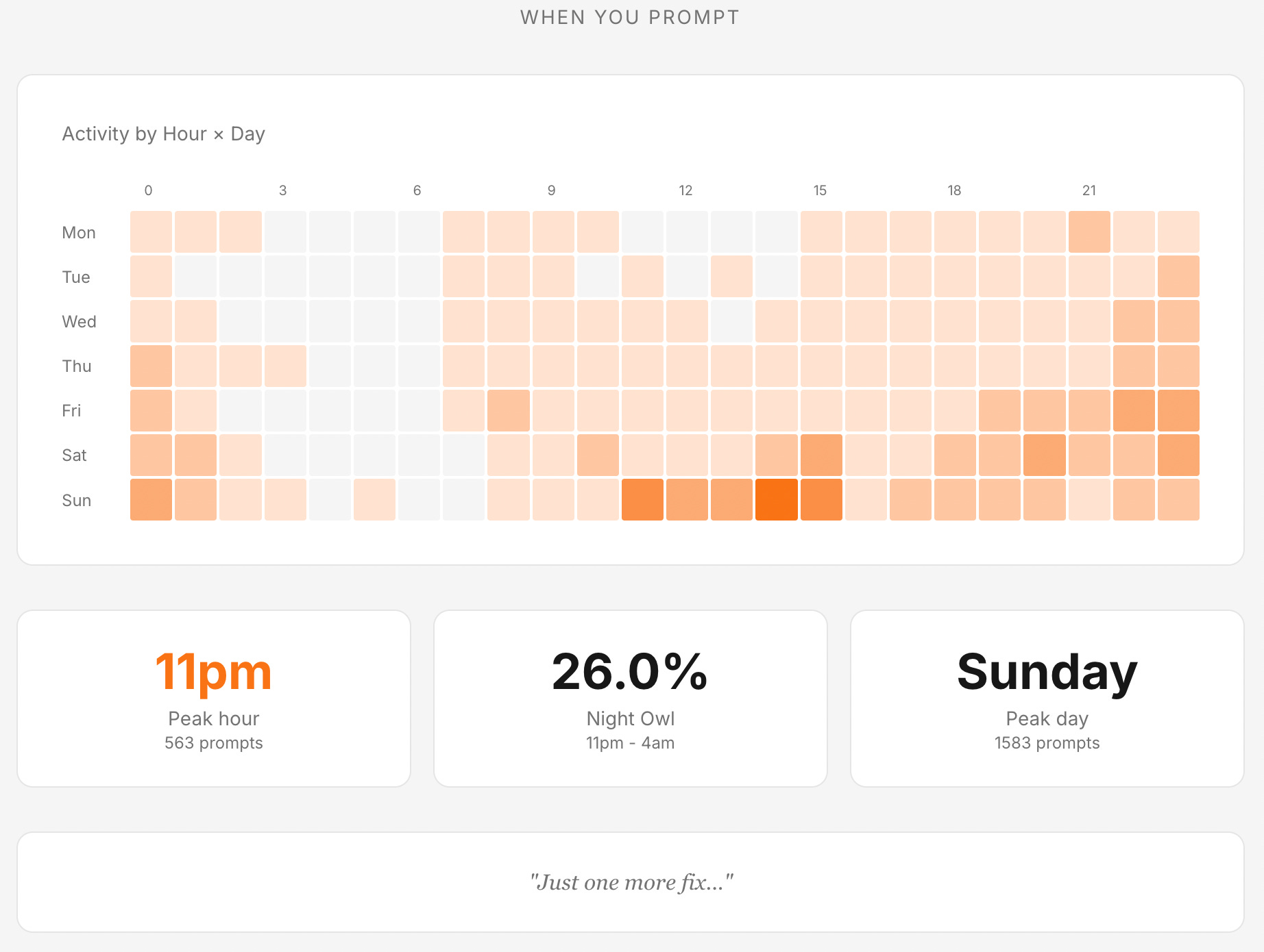26% of my prompts were sent between 11 pm and 4 am (yes, way after work)