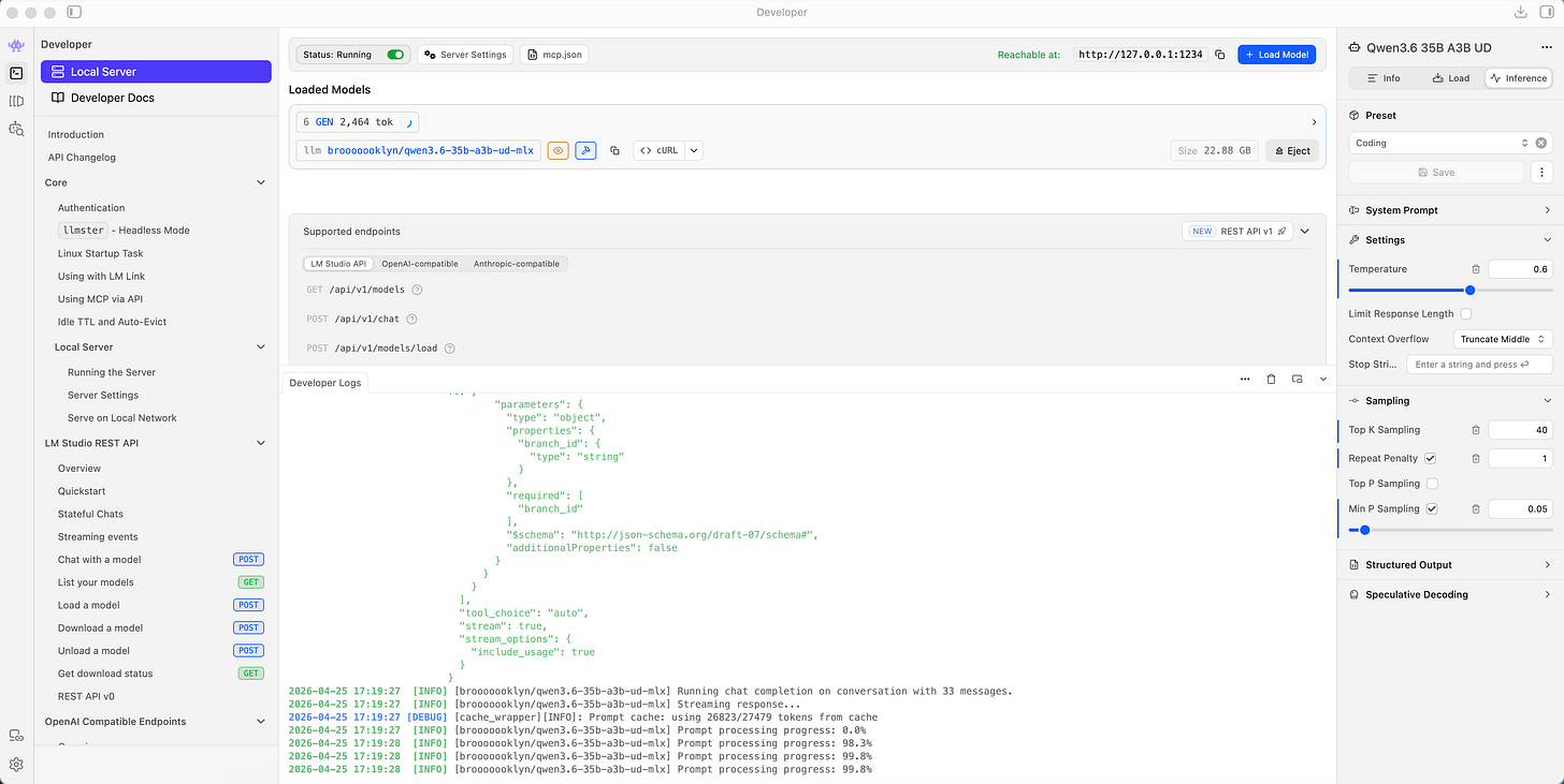 Proof of Concept: I literally just used Gemma 4 26B A4B and Qwen 3.6 35B A3B running on my laptop using LMStudio + OpenCode to help me do some of the research for this post (the writing is entirely my own). They were fast enough, and the reasoning was sufficient for the initial drafting and doing some basic web searching. Could I have gotten better output from GPT 5.5 or Claude? Absolutely. But is this good enough? Yes, it is, and cost me nothing.